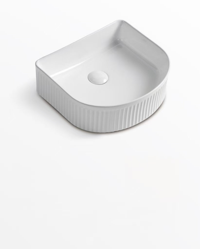 This above counter basin is an elegant shaped basin with a reasonable height of 130 mm, which allows for average height basin mixers to reach over the lip of the basin. The round edge gives the basin a softer feel to the bathroom, allowing an overall comfortable yet modern feel within the bathroom. The basin is made of ceramic which is a durable material with a smooth gloss finish. This basin is a real unique piece for your bathroom.
