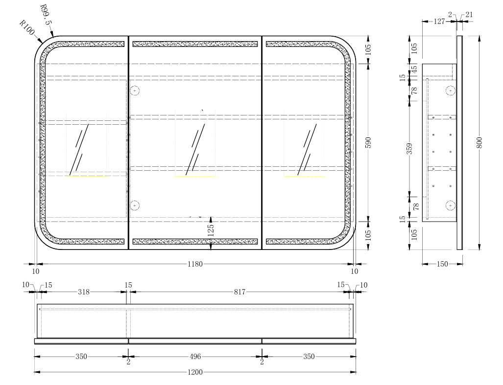 • Installation: Wall MountedDoor(s): 3 Door with Dtc soft closing hinge , internal adjustable shelf