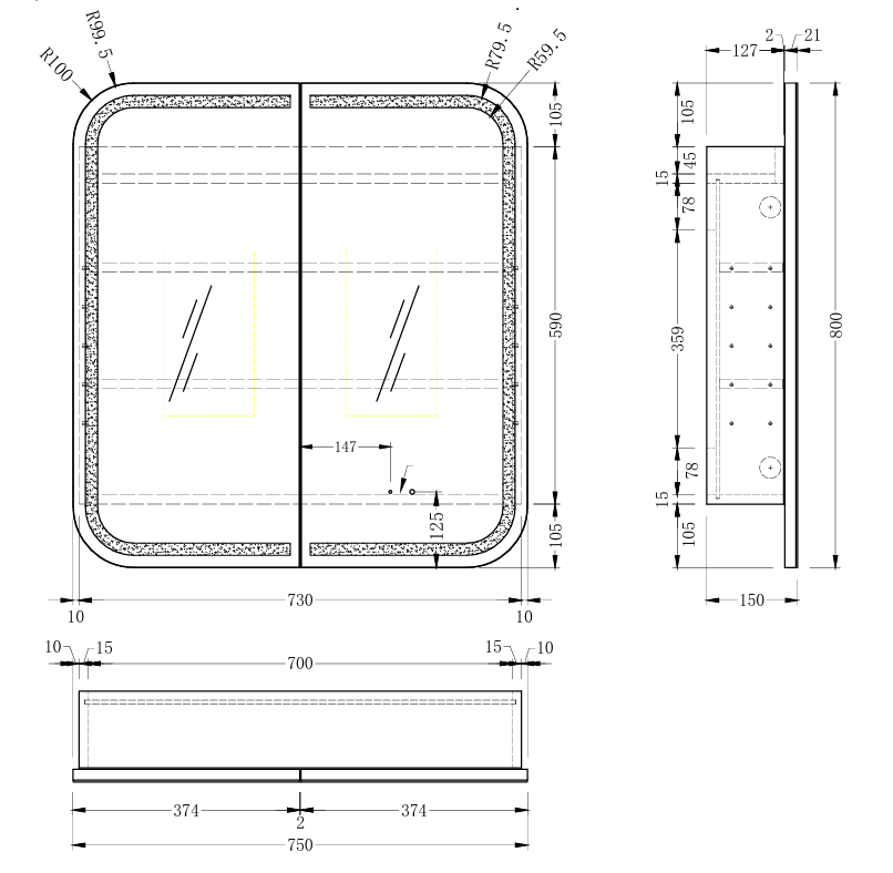 • Door(s): 2 Door with Dtc soft closing hinge , internal adjustable shelf