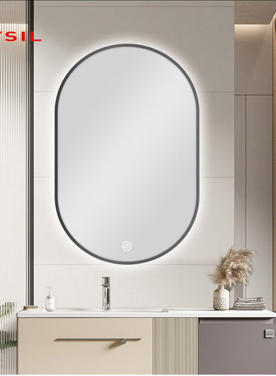 600 X 900MM OVAL SHAPE GUN METAL FRAMED CARYSIL LED MIRROR