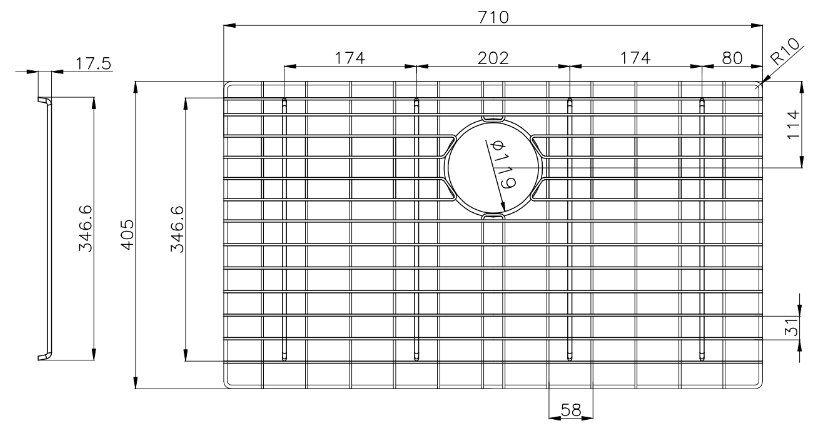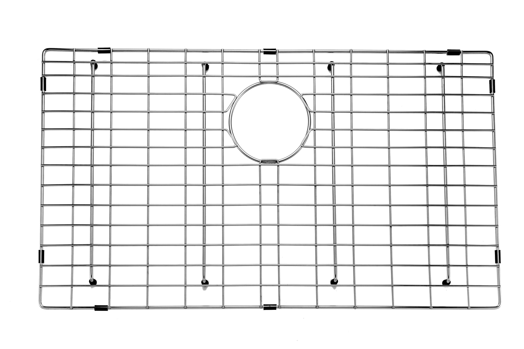 This is a stainless steel sink grid features a central drain opening for efficient water flow and is constructed with durable, rust-resistant stainless steel. The sink grid helps to elevate dishes, allowing water to drain properly and reducing direct contact with the sink bottom