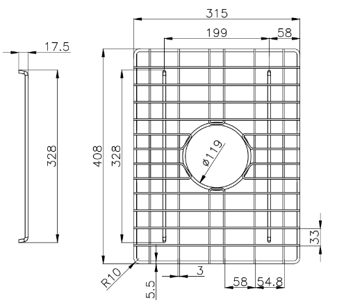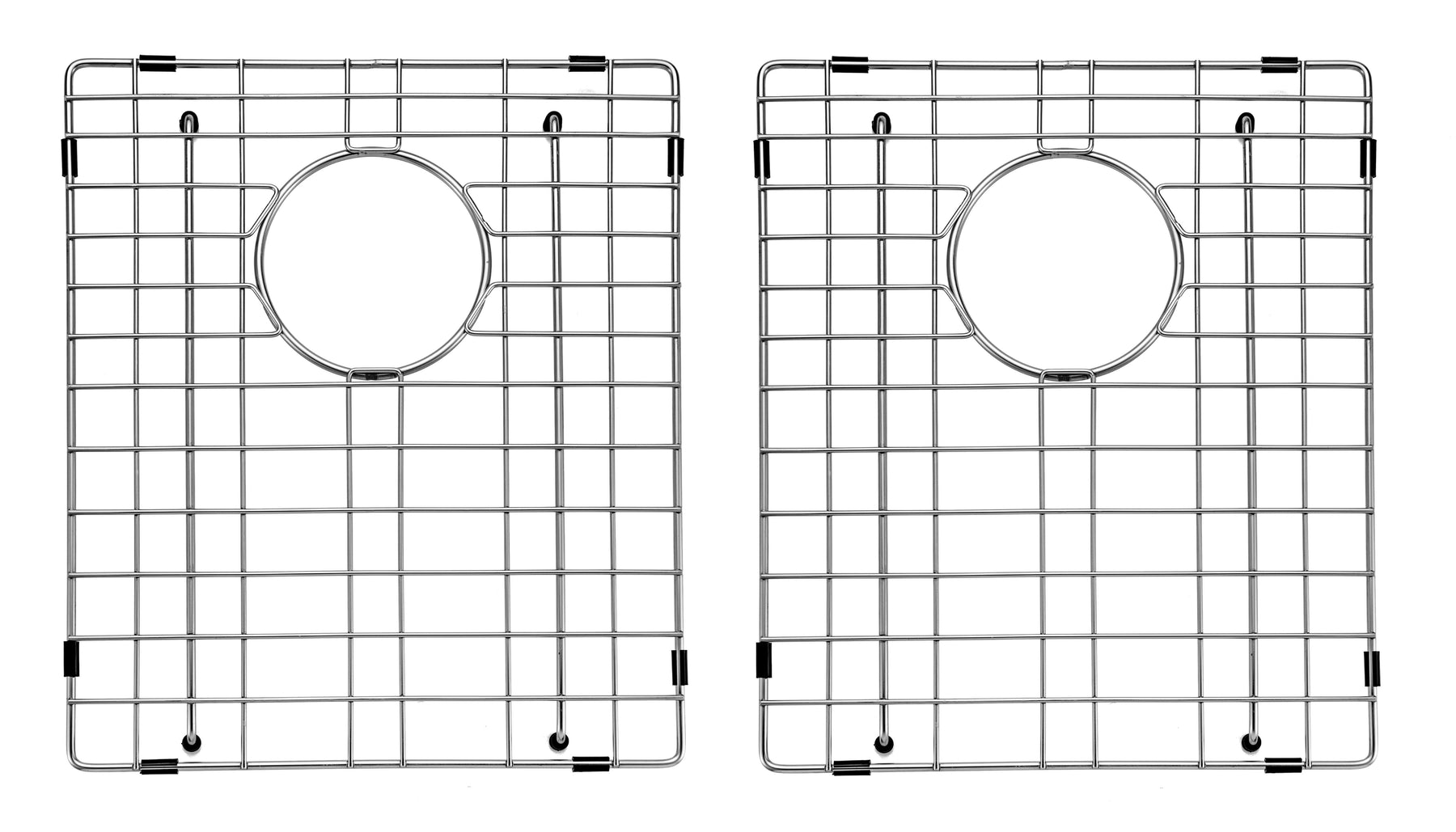 This is a stainless steel sink grid features a central drain opening for efficient water flow and is constructed with durable, rust-resistant stainless steel. The sink grid helps to elevate dishes, allowing water to drain properly and reducing direct contact with the sink bottom
